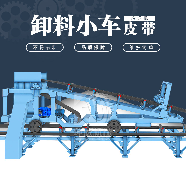 皮帶輸送機卸料小車在部件組成上和皮帶輸送機沒有太大差異。都是包含滾筒輸送帶以及托輥等部分組成。